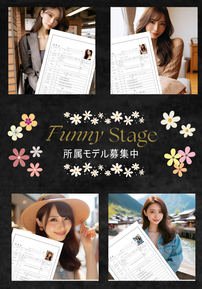 モデルオーディション モデル FunnyStage所属モデルを募集しています。 https://funnystage.jp/wp-content/uploads/2024/04/e3aeaba3038100a7d288e610b7709e4b.mp4 俳優・女優・モデルなど、様々分野、様々な世代を対象としています。 自分を売り込む積極的な人を求めています。 参加は下記よりエントリーしてください。 こちらの<良くある質問>もご参照ください。 女優オーディション 次の記事